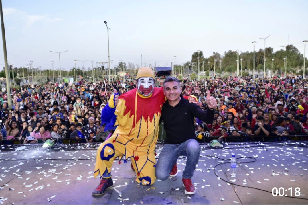 Luego de la reprogramación para el domingo debido al viento zonda, el Festejo del Día de las Infancias en el Parque de la Ciudad de Chimbas convocó a más de 30.000 personas, quienes disfrutaron del gran espectáculo de uno de los artistas infantiles más convocantes como es Piñón Fijo.   Con sus canastas, sillas y reposeras, el público comenzó a llegar sobre las 13 del mediodía al espacio público ubicado en Benavidez y Tucumán. Allí los más chicos pudieron jugar a los tradicionales juegos de saltar la soga, tumba latas, laberintos y elástico. Los más grandes a su vez, pudieron disfrutar de una pequeña feria de artesanos y emprendedores del departamento, quienes expusieron sus productos para los asistentes.   En el escenario mayor se pudo disfrutar de la presentación de la banda local Los Genios cuyo repertorio hizo bailar a grandes y chicos. Posteriormente fue el turno del elenco infantil Magic Show integrado por jóvenes chimberos, quienes triunfan en la provincia y en diferentes lugares del país con su mágica obra de teatro con personajes de películas.   Finalmente subió al escenario el legendario Piñón Fijo quien en esta oportunidad celebra sus 33 años como artista. El payaso cordobés hizo mover el cuerpo a grandes y chicos, haciendo un recorrido por sus grandes éxitos y por canciones tradicionales.