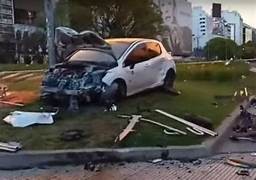 choque en el Obelisco: Un auto terminó arriba de la Plaza de la República
