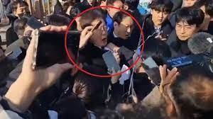 Lee Jae Myung fue atacado en la ciudad surcoreana de Busán durante un encuentro con periodistas.