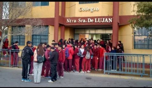 Caos total en el Colegio Nuestra Señora de Lujan. Tanto adentro como en las puertas del establecimiento educativo de Capital se está llevando adelante un reclamo por una presunta violación a una alumna con discapacidad en los baños del establecimiento.