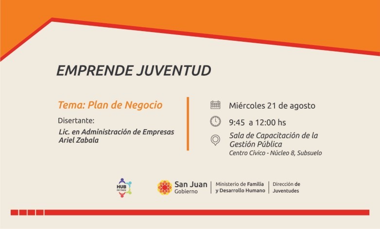 La convocatoria es para todos los emprendedores interesados en aprovechar esta valiosa oportunidad para mejorar sus habilidades en la creación de planes de negocio y expandir sus redes. Será el miércoles 21 de agosto, de 9:45 a 12 en la Sala de Capacitación a la Gestión Pública, Centro Cívico - Núcleo 8, Subsuelo. Para inscribirse, ingresar en el siguiente link: https://docs.google.com/forms/d/e/1FAIpQLScy1QfzguKCWdbBPJuM-MW7HA57UY4nboqzaVuQ8PXlddec9g/viewform