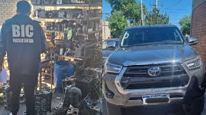 La Brigada de Investigación Central, en un allanamiento en un taller del departamento de Chimbas secuestró una camioneta melliza y varios motores de autos robados.