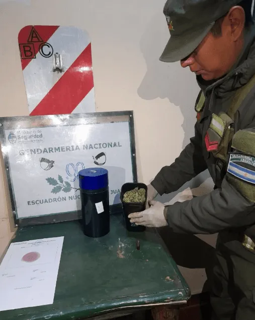 Los efcetivos revisaron los equipajes del bus, en el lugar emncontraron una valija que contenía 9 frascos negros, todos con una sustancia vegetal que, luego de ser puesta a prueba, se constató que se trataban de 837 gramos de marihuana.
